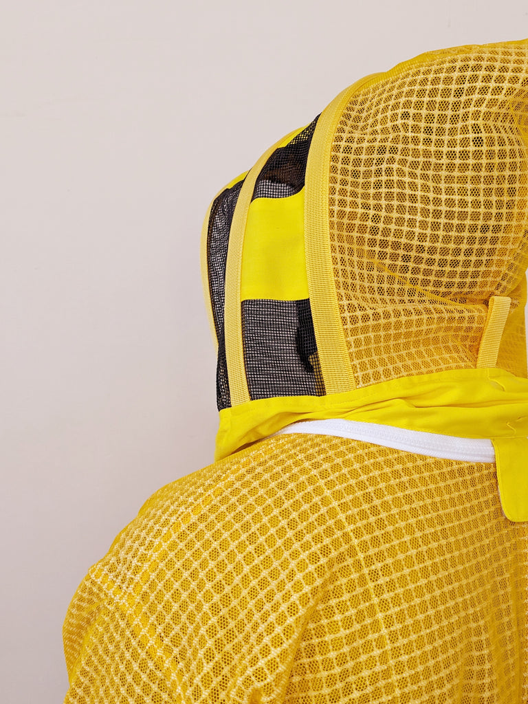 The mask is the astronaut model, it is extensible, it is rigid and with ear protection so as to completely isolate the head. The vision is 360° and its structure protects from the sun for optimal work. The mask can be easily unfastened and the jacket can be safely washed in the washing machine several times without damaging it. The sturdy zips allow you to put it on and take it off quickly and easily. Four polycotton lined pockets ensure just the right amount of space for your apiary equipment, from stick to mobile phone.